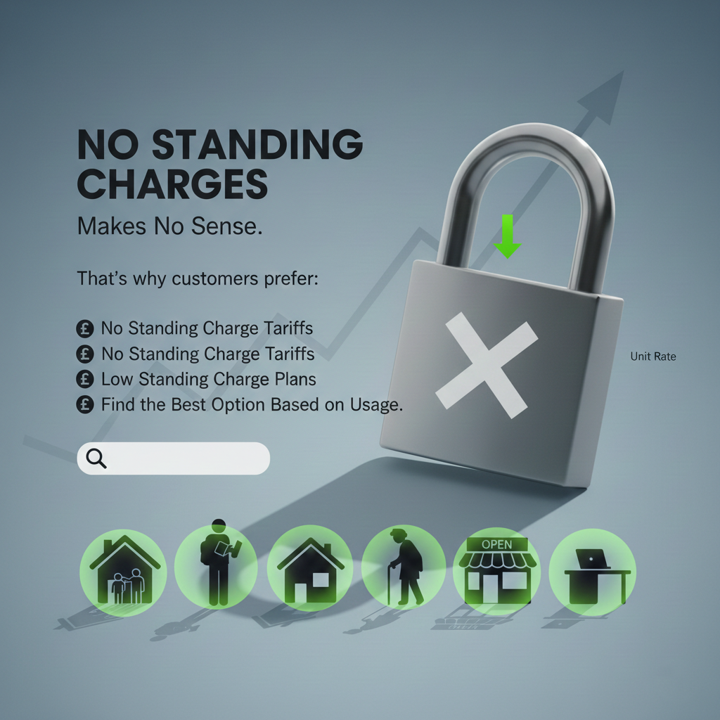 We perform a full electricity standing charge comparison across multiple suppliers. This includes checking the cheapest standing charge electricity, reviewing EDF standing charge options, and other energy suppliers without a standing charge.